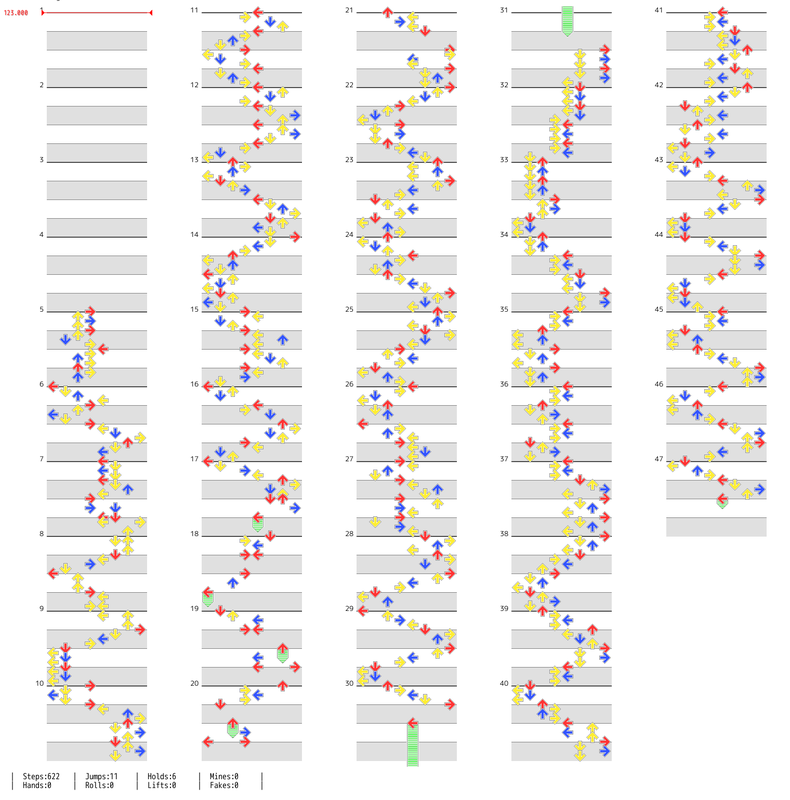 2015-03-06 勝手にWeekly Edit Part1(RTTFF) PEEEETANさんからRTTFFの譜面画像を上げていいという許可が得られましたので、自分のペースで足運びを見たい方や、配置の参考にしたい方はご覧ください。